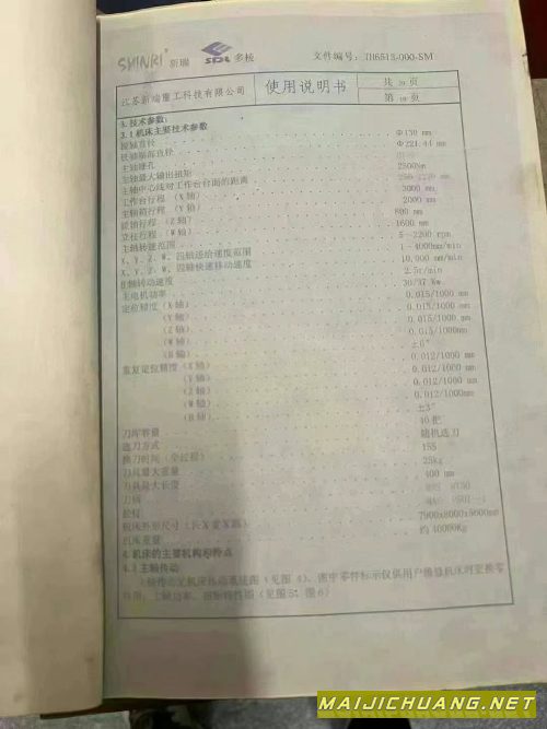 产品名称:宁夏工厂刚买新瑞6513刨台数控镗床 工作台2X1.8米 X轴.