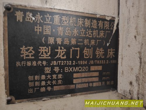 在位出售2007年青岛永立BXMQ20-16龙门刨铣,缺刨头,一个侧铣头,一个立铣头,完好可试机,导轨无拉伤。 设备在洛阳 信息编号:S365545 |
