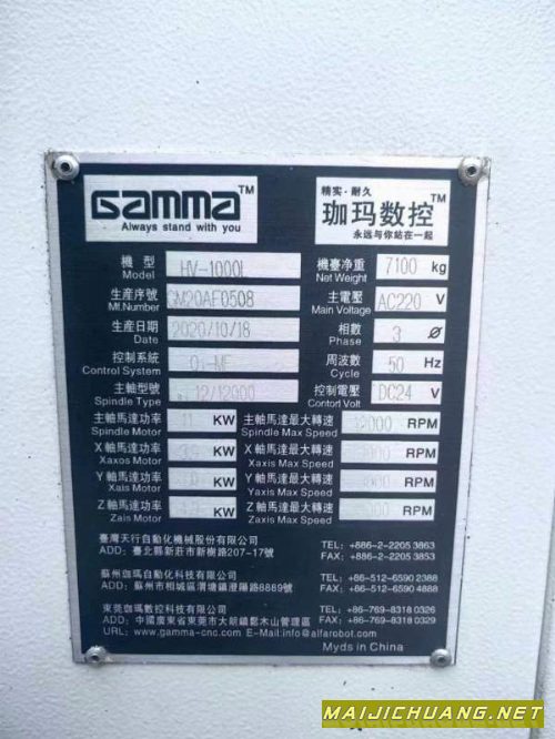 湾台珈H玛V1000L重型加工中心三轴柱滚导轨.发那科0i-MFlpus系统阿法尔电机驱动.带台湾200轴四转台台湾罗翌TB40主轴直连12000转带冷油机.24把机械手刀库.带旋螺排削机 信息编号:S527036 |