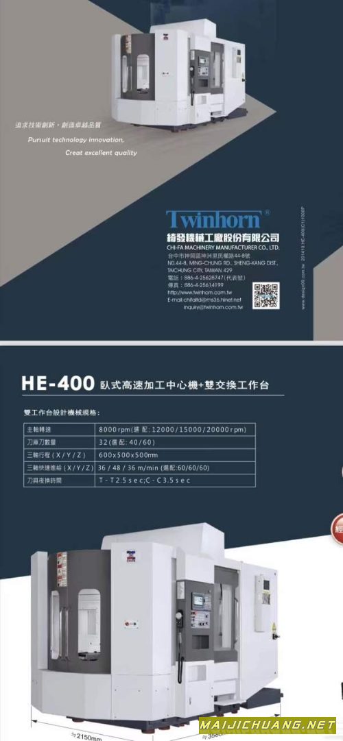 刚刚买下一台台湾崎发400双工位2017-11月三轴行程0工作台转台千分之一分度电主轴BBT40主轴12000三轴线规三菱m80A包系统刀库40把、新机100多万、现在一半不到 信息编号:S215817 |