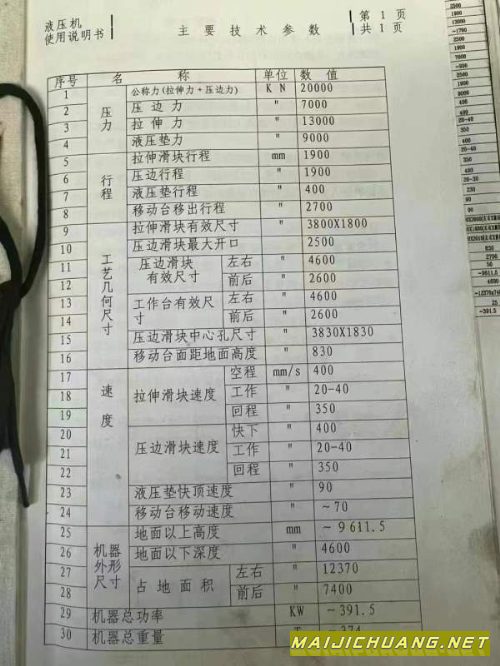 长沙工厂在位出售5800吨合肥锻压框架2011年生产液压线一条分别组成设备参数见6.7.8.9图 信息编号:S722467 |