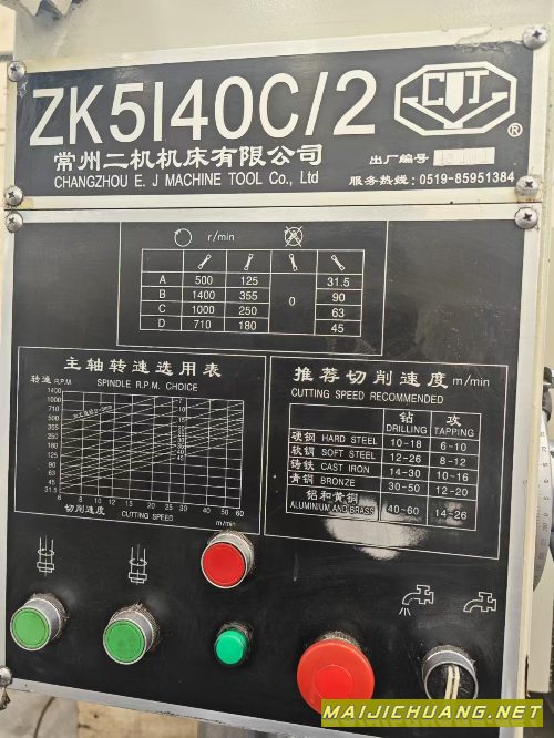 出售2016年产常州二机ZK5140C/2数控钻,广数系统,工作台550X1100,少用,洛阳仓库。 设备在洛阳 信息编号:S674806 |